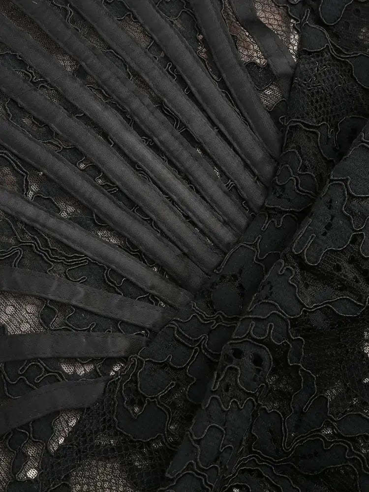 This strapless lace mini dress creates a sultry silhouette for club nights or fancy events. A corset-style bodice and delicate draping lend a youthful. alluring vibe.