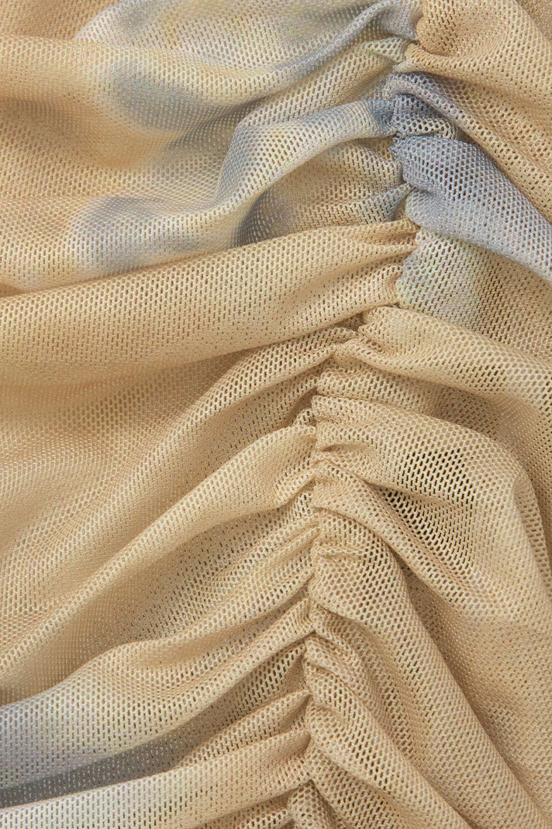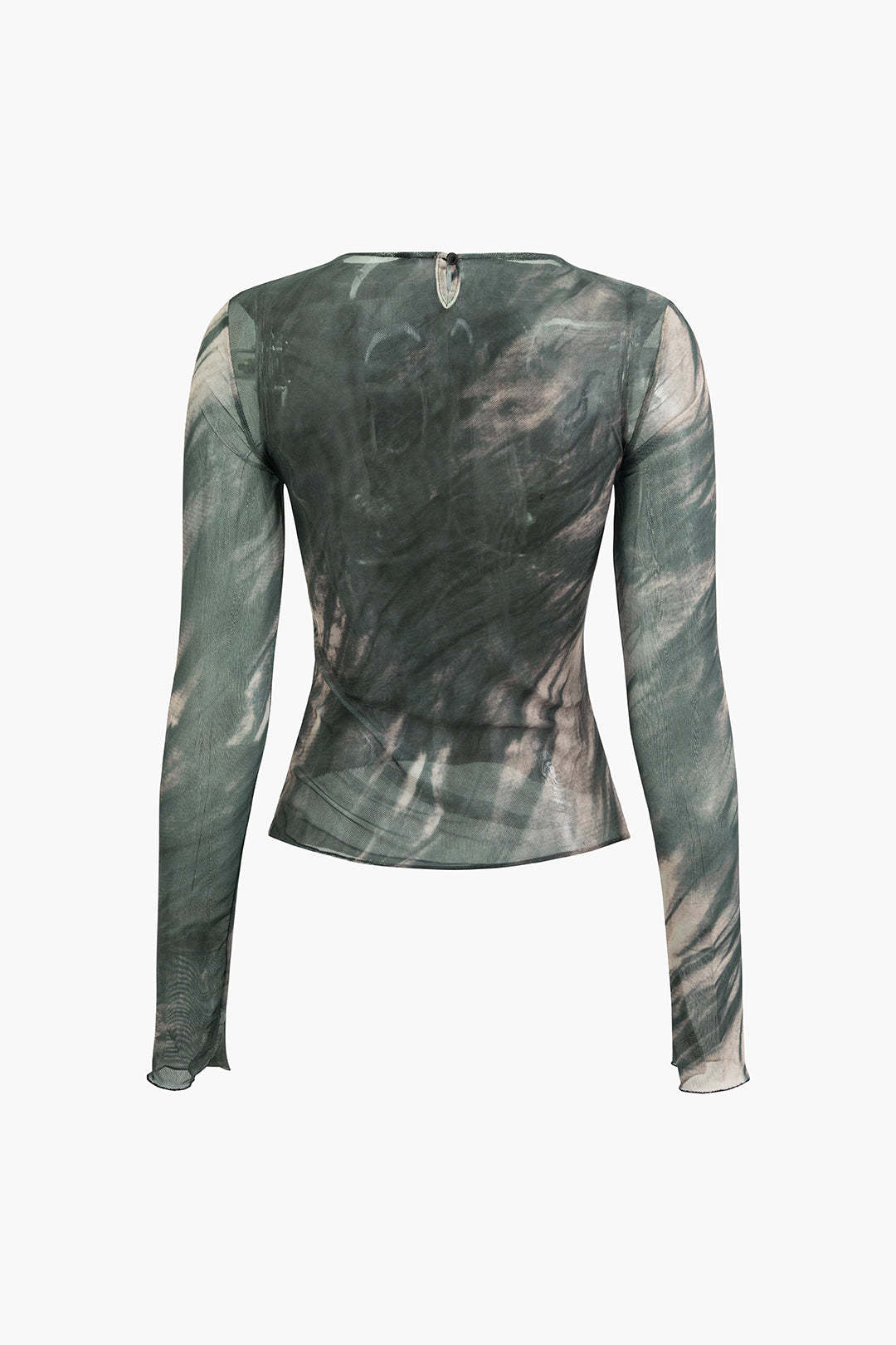 Tie Dye Ruched Mesh Long Sleeve Top