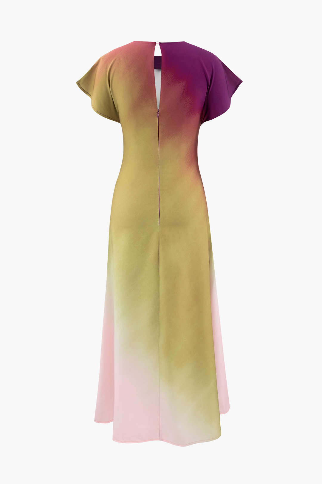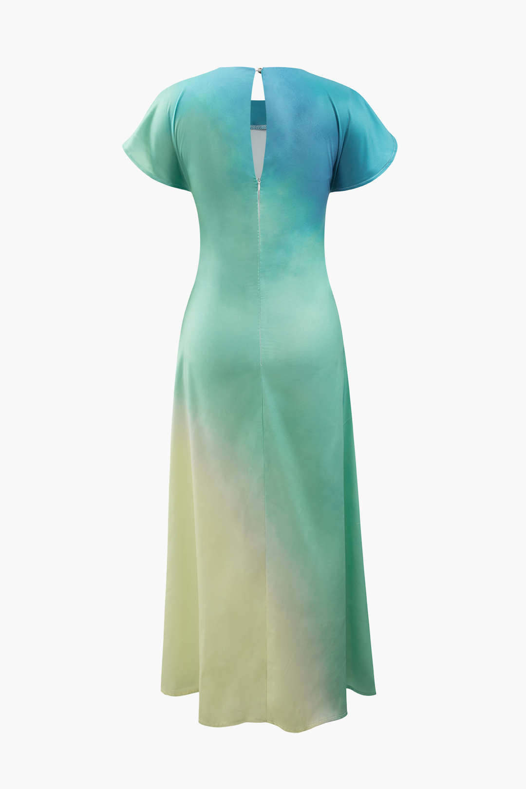 Tie-Dye Satin Cap Sleeve Maxi Dress