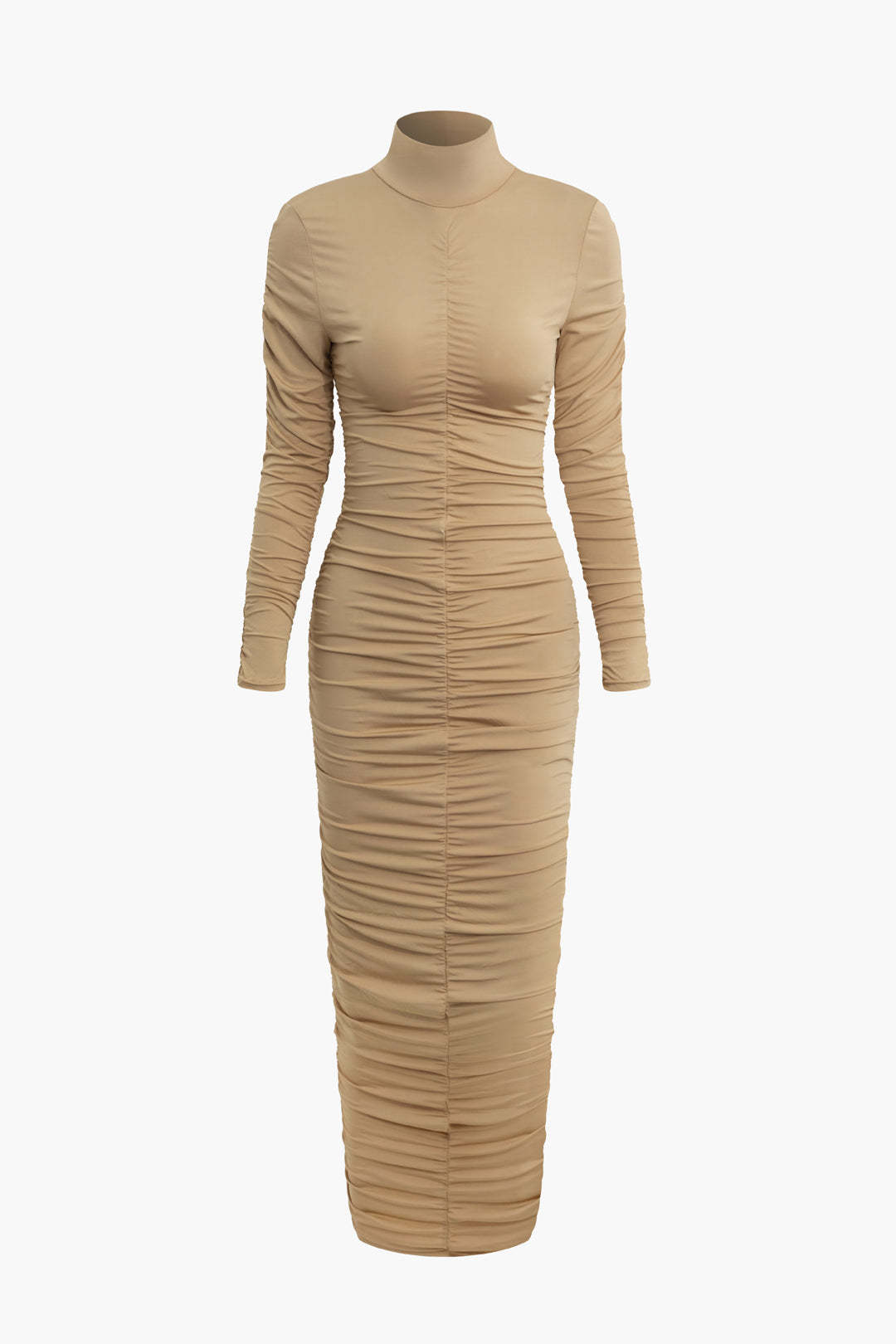 Turtleneck Ruched Long Sleeve Maxi Dress