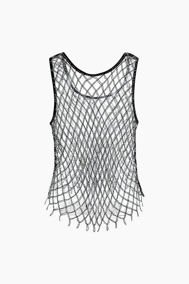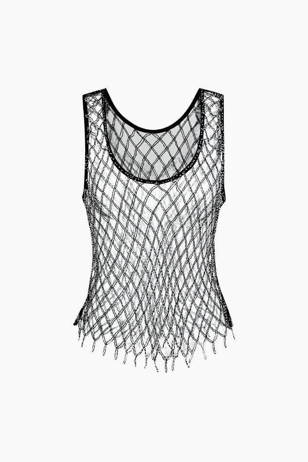 U-neck Sheer Net Tank Top