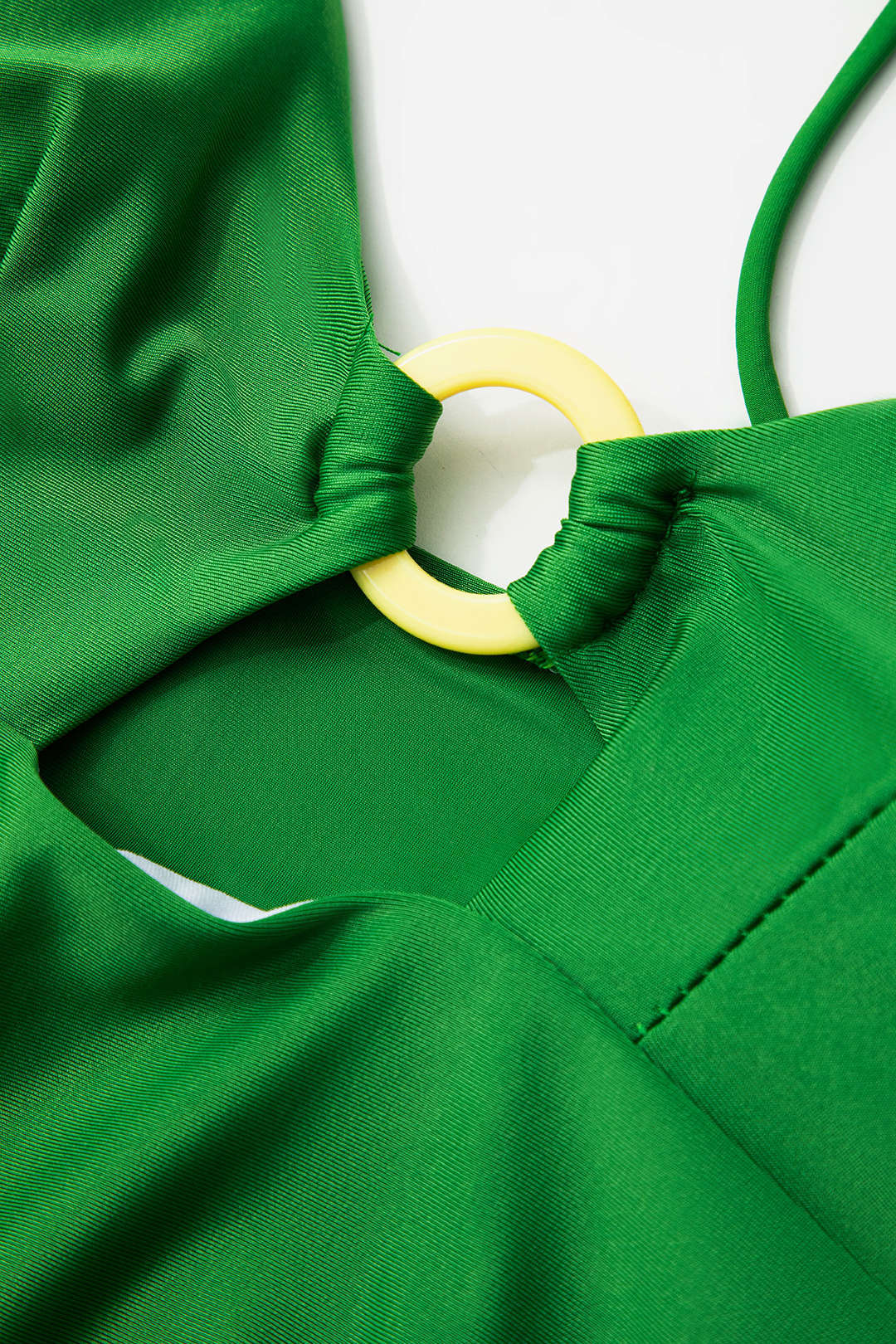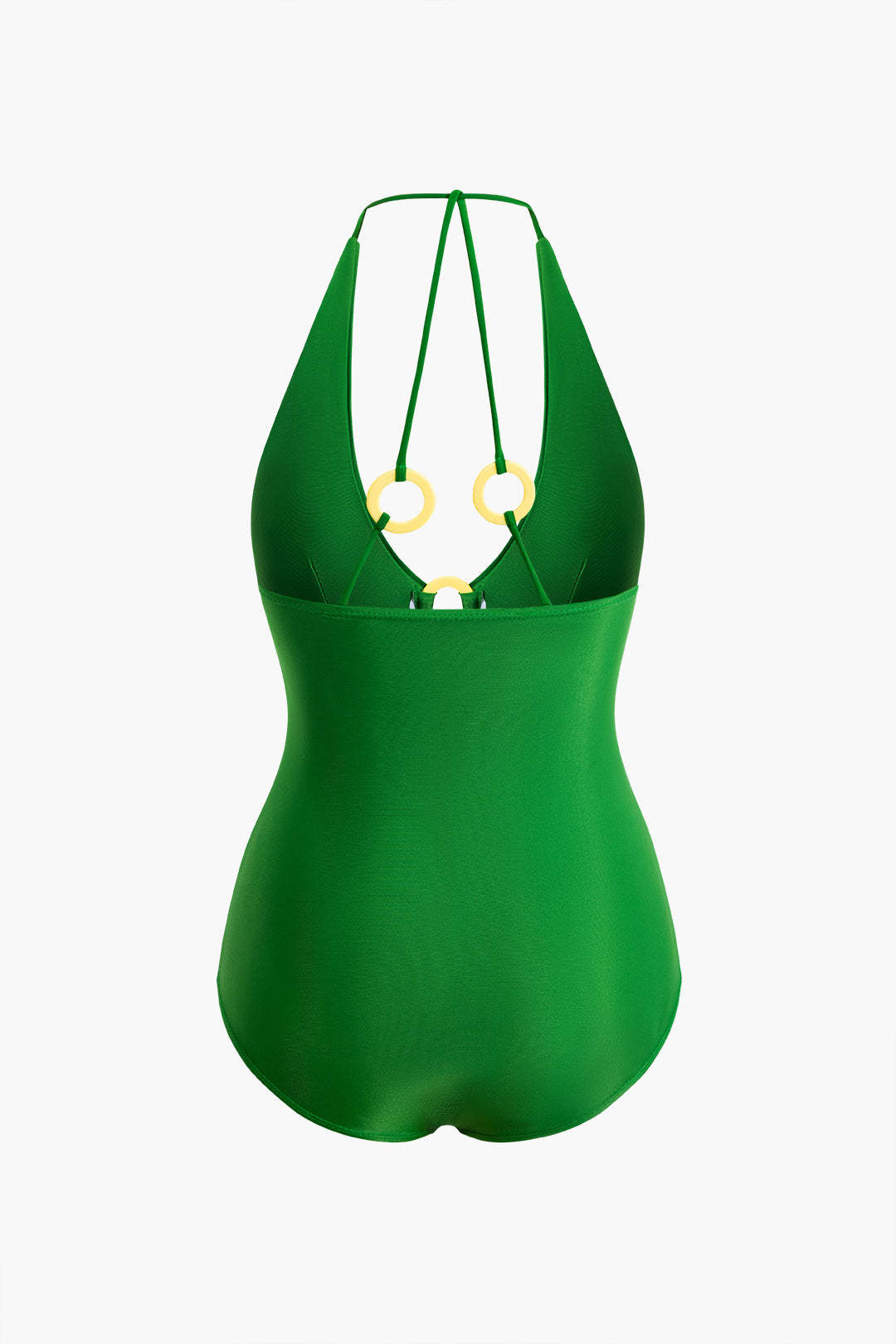 V-neck Ring Detail Cut Out Halter One-Piece Swimsuit