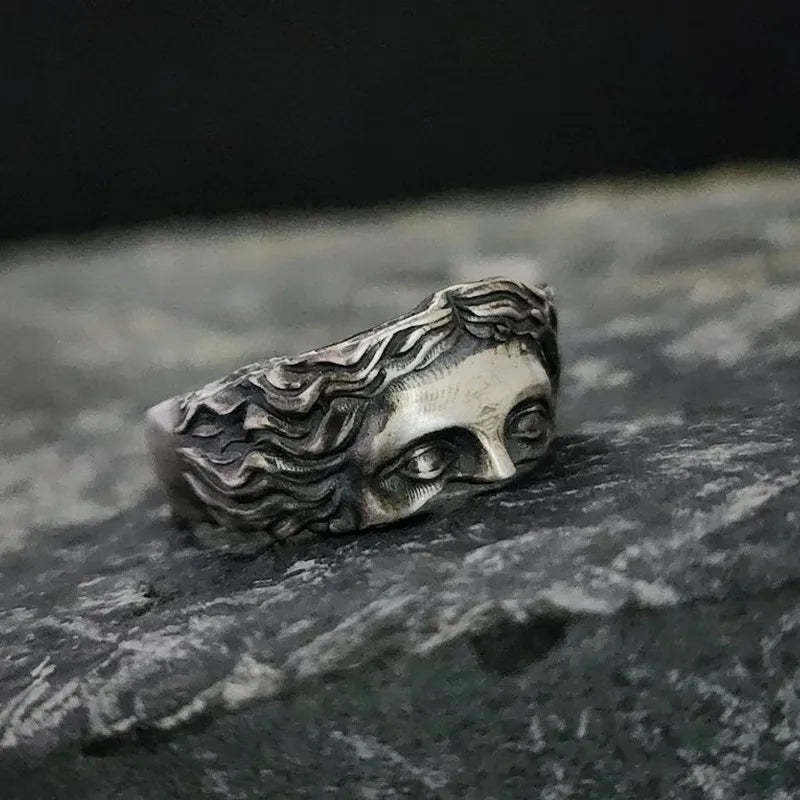 The Venus Ring is a bold statement piece inspired by classical sculpture. Featuring an intricately carved face design. this ring exudes an antique aesthetic. Available in gold and silver tones. it complements both edgy and vintage-inspired styles.