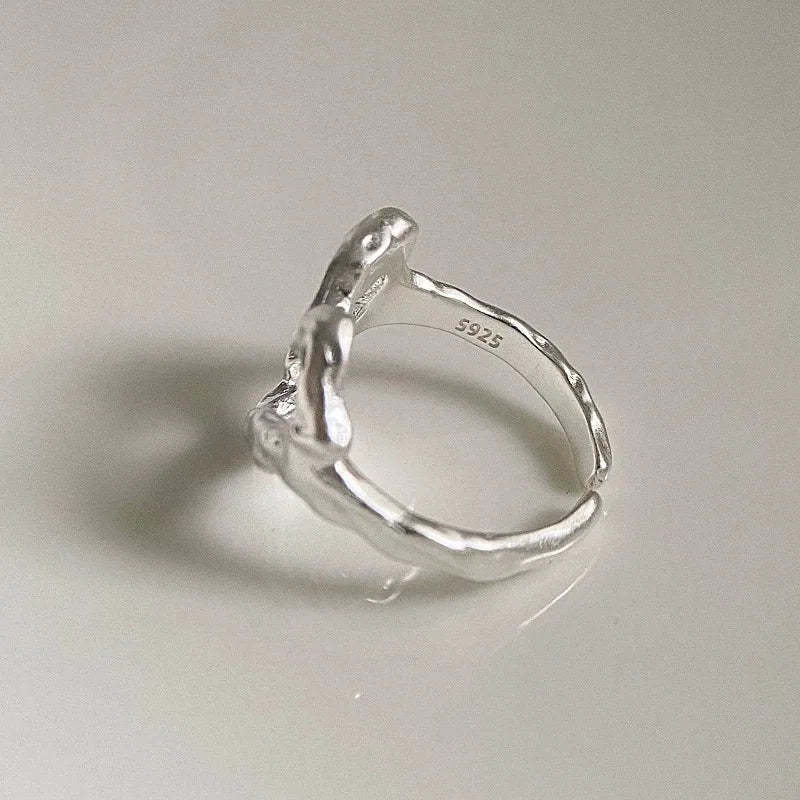 The Wavy Heart Silver Ring redefines romantic minimalism with its sculptural design and fluid shape. Crafted from sterling silver. it features an open heart silhouette with soft. uneven curves that catch the light beautifully. Perfect for stacking or wearing solo. this ring adds a subtle artistic edge to your everyday look.